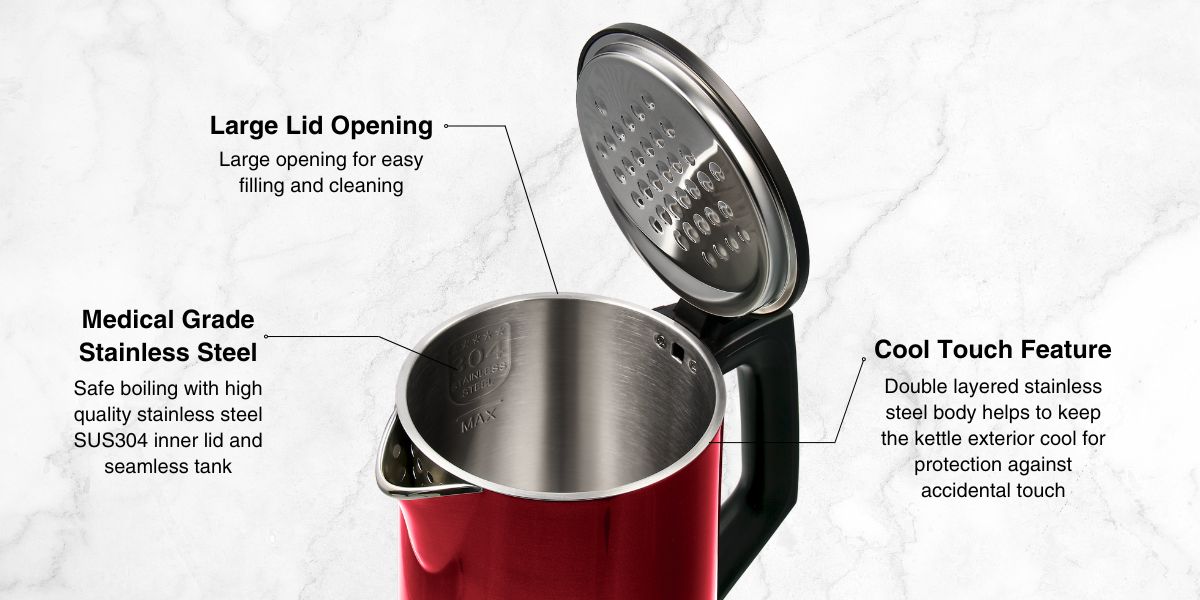 Inner lid and seamless tank ensure hygiene, safety, and durability.