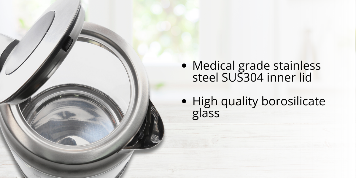 The kettle features high-quality borosilicate glass, which is not only aesthetically pleasing but also highly resistant to thermal shock and stains, making it easy to maintain.