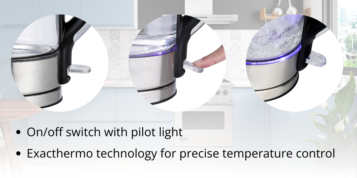 The easy-to-use on/off switch with an indicator light lets you know when the kettle is in operation.
